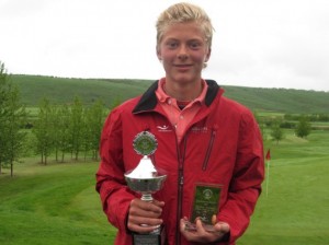 Arnór Snær Guðmundsson, GHD, Íslandsmeistari í holukeppni í strákaflokki – 15. júní 2013 á Leirdalsvelli er kominn áfram í Unglingaeinvíginu. Mynd: Golf 1