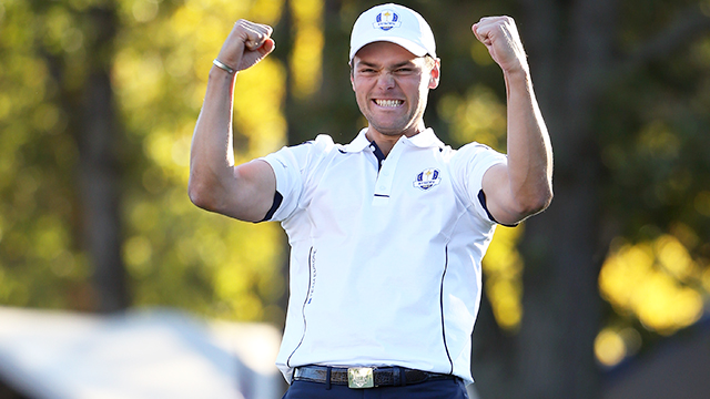 2. Fimm fuglar Poulter í röð í fjórbolta-leikjum laugardagsins: Einn fugl, síðan tveir og þrír. Augun að rúlla út úr augntóftunum. Enginn trúði því að Poulter gæti haldið uppteknum hætti… eða gæti hann það? Fjórði fugl hans í röð kom á par-3 17. brautinni, gegn öllum líkum og síðan vann hann leikinn með fuglinum á 18. Poulter var hvatinn að sigri Evrópu í Ryder bikarnum í „kraftaverkinu í Medinah.“