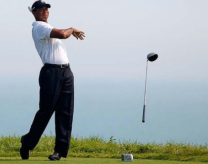 Í svona leiðindaveðri, í kulda, rigningu og hvassviðri, antigolfveðri par excellence er fátt betra en að sjá eitthvað sem léttir lundina. Hér að neðan gefur að finna myndskeið með manni sem er svo pirraður að slá boltann sinn alltaf í vatn að hann endar með að fleygja kylfunni út í vatnið og síðan allt settið á eftir við mikinn fögnuð spilafélaga sinna, sem skemmta sér hið besta. Merkilegt hvað mannskepnan hefir gaman af óförum annarra!