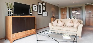 Enn er það útsýnið yfir golfvöllinn (hér: Secession) sem er aðlallinn við þetta herbergi.