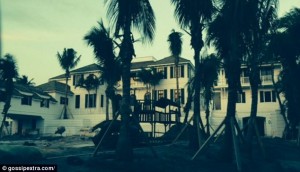 Glæsihýsið er málað hvítt að utan og er með svörtum gluggahlerum. Það er 9 herbergja með 8 baðherbergjum, heimabíói, vínkjallara, Koi tjörn, spa og líkamsræktarsal.