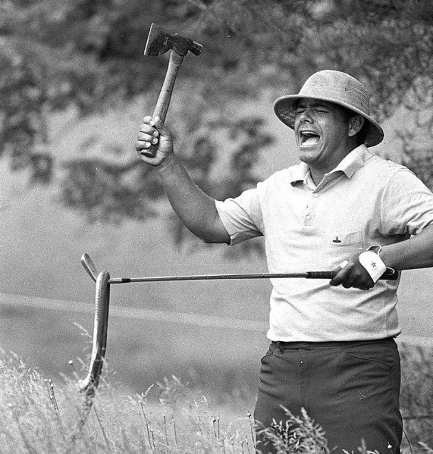 Eitt af fyndnum augnablikum golfsins er þegar Lee Trevino henti gúmmísnák í Jack Nicklaus þegar þeir voru á 1. teig á Opna bandaríska 1971 að hefja bráðabana.  Trevino var/er grínari af Guðs náð og náði síðan að vinna Nicklaus í bráðabananum.  Grín Trevino verður enn fyndnara þegar hugsað er um þá stífu stemmningu sem prakkarastrik hans átti sér stað í;  stífa starfsmenn bandaríska golfsambandsins sem voru í kringum hann og Nicklaus, hinn erkiíhaldsama, hefðarfyllta Merion golfvöll og bara tímann, sem atvikið átti sér stað á 🙂  Gott að menn hafa haft húmor á öllum tímum!