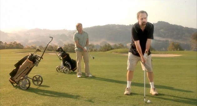 Sumum finnst golfsenan í „Sideways“, kvikmynd frá árinu 2004 býsna fyndin. Fjallar um tvo vini sem eru í „midlife“krísu. Þeir eru leiknir af þeim Haden Church, og Paul Giamatti. Auðvitað taka þeir einn golfhring!