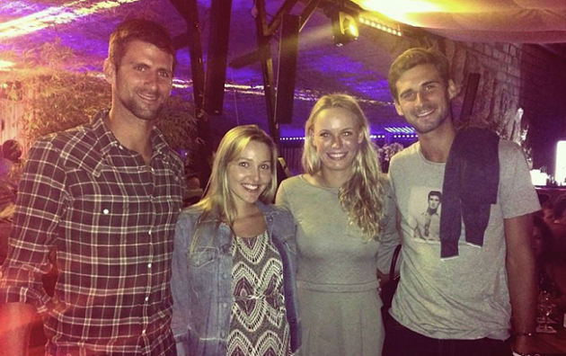 Caroline setti mynd af tvöfalda deitinu (léleg þýðing á double date) á twitter, en á henni er hún með Marko, bróður Novak, 27 ára, sem nýlega vann Wibledon og ófrískri eiginkonu Novak, Jelenu Ristic, sem hann giftist fyrir aðeins 2 vikum.