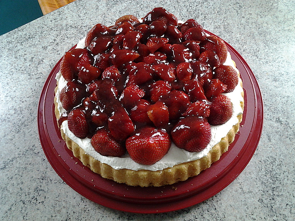 Egg slegin með vatni í 2 mín. Sykur og vanillusykur blandaður saman við eftir 1 mín og síðan er allt saman slegið í 3 mínútur til viðbótar (samtals 5 mín). Síðan er 200 g af hveiti sigtað með matarsóda og sett sman við. Deigið er sett í smurt 26 cm form .