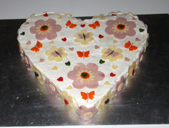 Sjá má uppskrift af hjartaafmælisbrauðtertu með því að SMELLA HÉR: