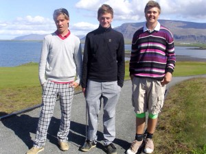 Afmæliskylfingurinn Ævarr Freyr á 1. móti Unglingamótaraðar Arion banka 2012 á Skaganum. Með honum á myndinni eru Kristinn Reyr Sigurðsson, GR (f.m.) og Birgir Björn Magnússon, GK (t.h.). Mynd: Golf1