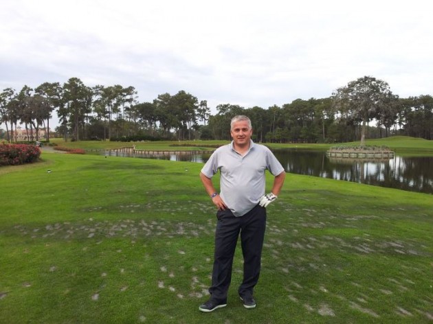 Bergsteinn Hjörleifsson, nýendurkjörinn formaður GK, við 17. braut TPC Sawgrass golfvallarins. Mynd: Í einkaeigu. Afmæliskylfingur dagsins: Bergsteinn Hjörleifsson – 30. júlí 2012