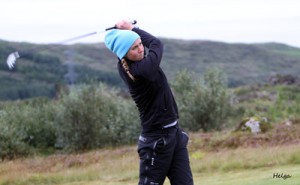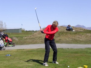 Anna Sólveig Snorradóttir slær upphafshögg sitt á 1. móti Unglingamótaraðar Arion Banka upp á Skaga 2012, þar sem hún varð í 2. sæti. Mynd: Golf 1