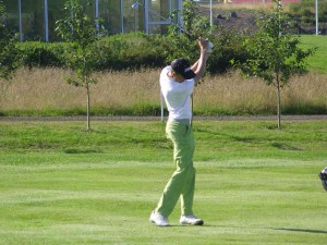 Birgir Björn Magnússon að fara að slá aðhöggið á 15. braut fyrir erni. Hann lauk hringnum með skor upp á 64 högg og varð Íslandsmeistari 14 ára og yngri, 8. ágúst 2011, með glæsibrag! Mynd: Golf 1