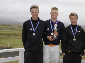 Sigurvegarar á Íslandsmóti unglinga í höggleik í drengjaflokki 15-16 ára: Birgir Björn Magnússon, GK, varð í 2. sæti; Gísli Sveinbergsson, GK, Íslandsmeistari í höggleik í drengjaflokki; Ernir Sigmundsson, 3. sæti. Mynd: golf.is