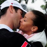 Gregory Bourdy fær afmælis nei reyndar sigurkoss frá kærestu sinni Annabelle Savignan eftir að hann vann UBS Hong Kong Open 2009