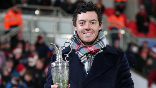 Í miðju viðtali fara áhangendur Ulster að syngja „Sweet Caroline“ – smá stríðni í garð Rory, sem lauk sambandi sínu við dönsku tennis- stjörnuna Caroline Wozniacki á árinu, rétt áður en átti að fara að senda út brúðkaupsboðskortin s.s. öllum er eflaust í fersku minni.