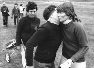 Kristín Pálsdóttir GK tekur við hamingju-óskum eftir sigur á Íslandsmótinu 1976.