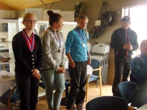(Lengst t.v.: Freydís Eiríksdóttir, GKG, sigurvegari í stelpnaflokki – 14 ára og yngri á 4. móti Áskorendamótaraðar Arion banka, 21. júlí 2012.) Mynd: Golf 1.