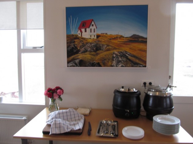 Eitt eftirtektarverðasta á Húsatóftavelli var þó nýi golfskálinn þeirra Grindvíkinga, sem leyst hefir gamla, fallega skála GG af höndum. Innan í skálanum er nú málverkasýning, með myndum listamannsins Pálmars Arnar Guðmundssonar. M.a. má sjá myndir Pálmars með því að SMELLA HÉR: