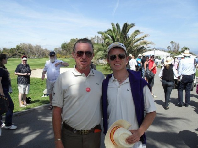 Í einstaklingskeppninni er Hrafn sem stendur í 4. sæti …. sama sæti og Miguel Angel Jimenez varð í nú í ár  á The Masters risamótinu- en Hrafn hitti Jimenez á Open de Andalucia, 27. mars fyrir 4 árum síðan, 2010 (og þá var meðfylgjandi mynd tekin).