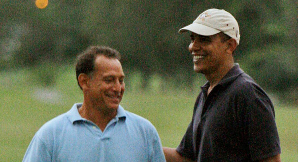 Barack Obama, Bandaríkjaforseti, spilaði golf s.l. mánudag (14. nóvember 2011) á Mamala Bay golfvellinum, rétt hjá sameinuðu herstöðvunum Pearl Harbor-Hickham, á Hawaii. Með honum í holli voru starfsmenn Hvíta hússins, Marvin Nicholson og Pete Selfridge og æskuvinur Obama, Robert „Bobby” Titcomb, frá Oahu. Obama var í Hawaii á fjáröflunarsamkomu, en hélt þaðan til Ástralíu og Indónesíu. Hann er á 9 daga ferðalagi, sem lýkur sunnudaginn 20. nóvember, þegar hann snýr aftur til Washington. Forsetafrú Bandaríkjanna, Michelle Obama, er einnig með honum í ferðinni. Forsetinn ætlar að reyna, auk skyldustarfa sinna þessa 9 daga, að hvíla sig aðeins eftir fremur annasama 3 daga á Asia-Pacific Economic Cooperation ráðstefnunni og því er golf vafið inn í dagskrá hans.