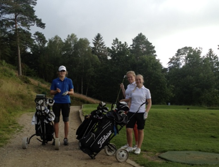 Stúlkurnar Berglind Björnsdóttir GR, Òlafìa Þórunn Kristinsdóttir, GR og Signý Arnórsdóttir, GK lèku ì gær æfingarhring á vellinum og munu hefja leik ì dag kl 11 hver á eftir annarri.