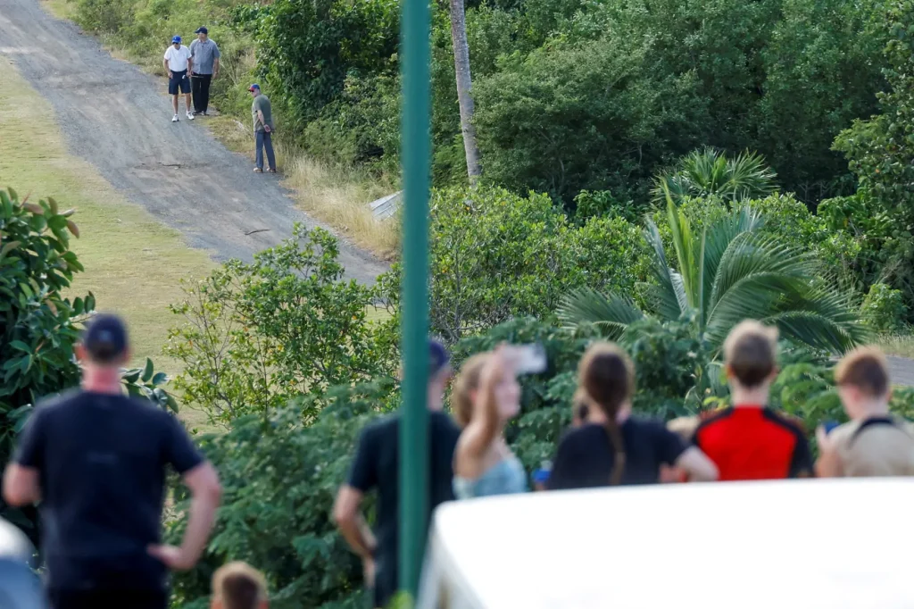 Hann fór m.a. hring með 16 ára barnabarni sínu, Róbert, sem alltaf er kallaður Hunter, á Buccaneer golfvellinum í Christiansted, á St. Croix … en varð fyrir því óláni að týna einum bolta sinna… og hefir því væntanlega þurft að taka Mulligan.