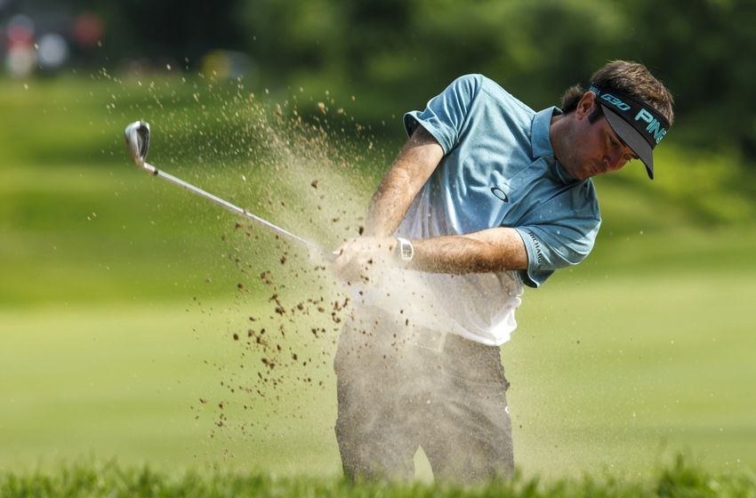 Bubba Watson rövlaði við dómara eftir að bolti hans lenti á mauraþúfu á lokahring PGA Championship risamótsins.