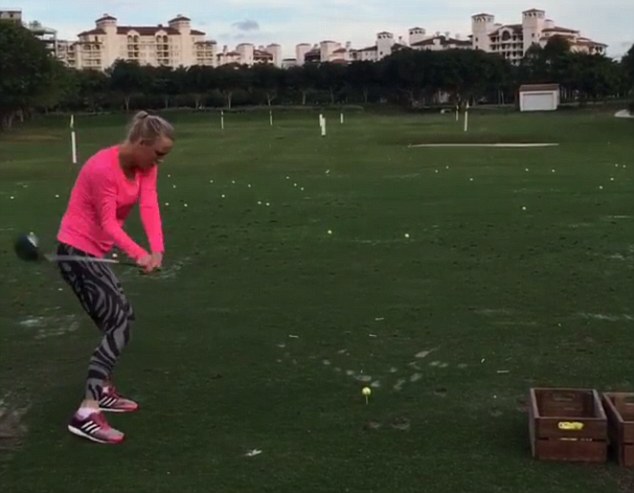 Til hennar sást hins vegar um daginn á æfingasvæðinu þar sem hún var að slá golfbolta, enda spilar daman golf.