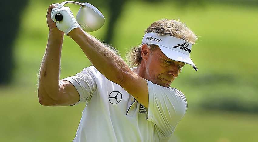 Bernhard Langer frá Þýskalandi er efstur í hálfleik á Constellation Senior Players Championship, sem fram fer í Belmont CC í MA.