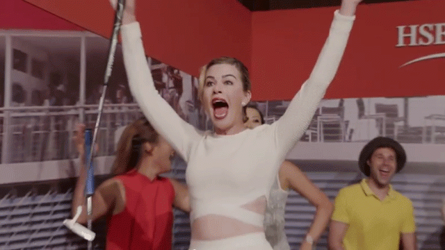 Hins vegar var hún á minigolfbraut í háhæluðum skóm og spariklædd í galakvöldi fyrir HSBC mótið og þar tókst henni að setja niður ekki síður flott pútt…. og það að Michelle Wie og nr. 1 á Rolex-heimslista kvenna, Lydiu Ko ásjáandi!