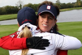 « Go back to Rosie Jones, fyirrliði Bandaríkjanna að hugga Cristie á Solheim Cup
