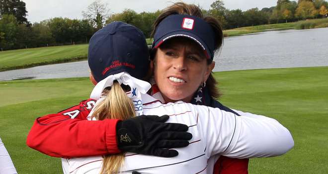« Go back to Rosie Jones, fyirrliði Bandaríkjanna að hugga Cristie á Solheim Cup