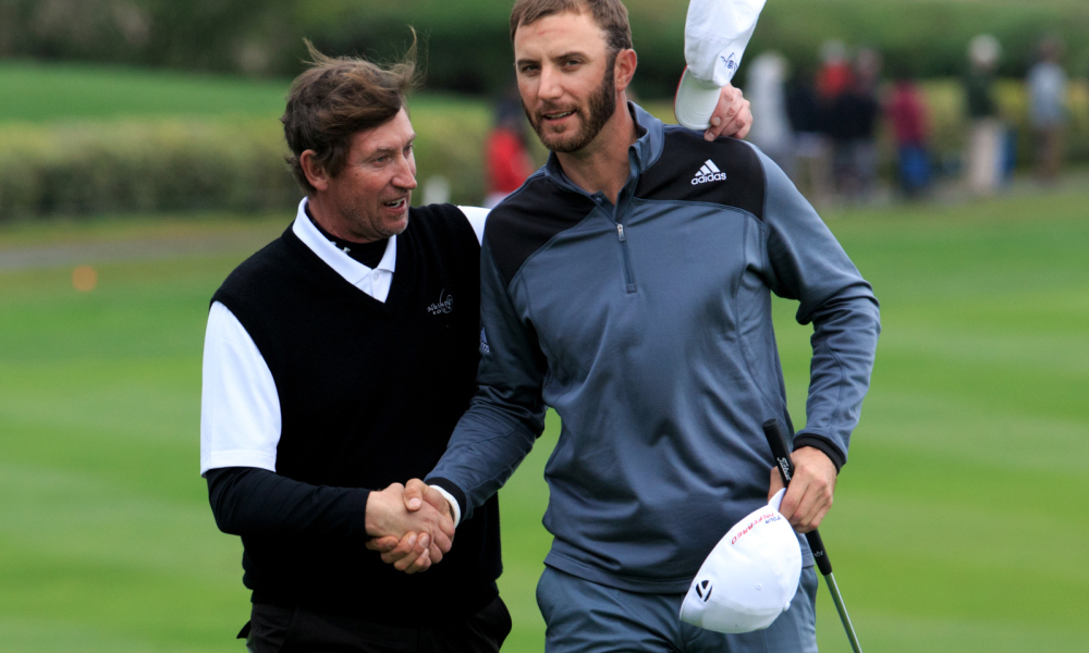 Dustin Johnson (DJ) er trúlofaður Paulinu Gretzky, dóttur hokkígoðsagnarinnar Wayne Gretzky.