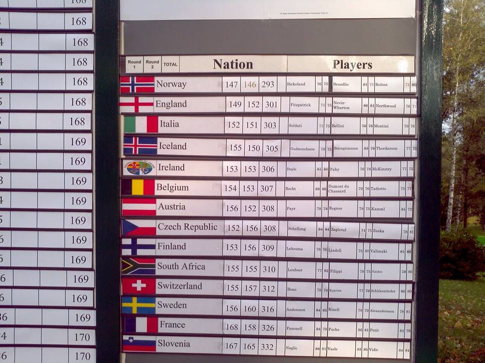 Sigurvegari í liðakeppninni varð sveit Noregs en í einstaklingskeppninni sigraði „heimamaðurinn“ Teodoro Soldati með heildarskor upp á 290 högg.