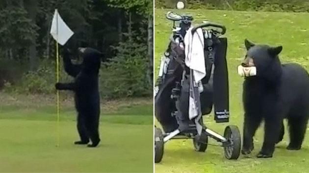 Dýr á golfvöllum: Skógarbjörn stelur sér samloku úr golfpoka!
