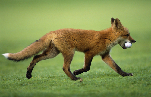 Dýr á golfvöllum: Rebbi leikur sér í golfi – Myndskeið