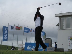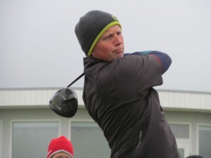 Ragnar Már Garðarsson, GKG, á 1. teig á glæsilokahringnum á Egils Gull mótinu þar sem Ragnar Már setti nýtt vallarmet af hvítum teigum – 62 högg!!! Mynd: Golf 1 Eimskipsmótaröðin 2014 (2): Ragnar Már sigraði og setti nýtt vallarmet af hvítum!