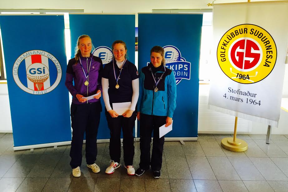 Á mynd f.v.: Anna Sólveig Snorradóttir, GK; sigurvegarinn Ragnhildur Kristinsdóttir, GR og Sunna Víðisdóttir, GR. Mynd: GSÍ