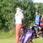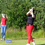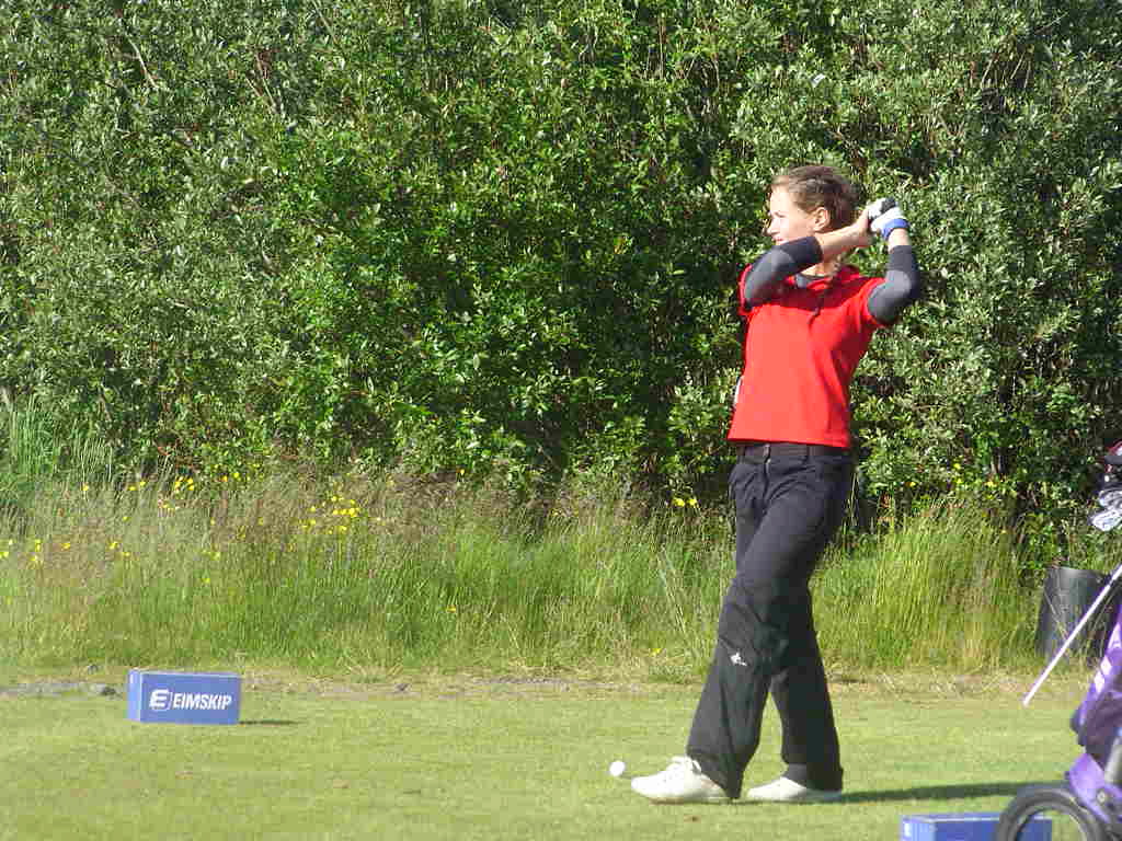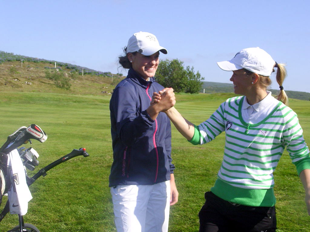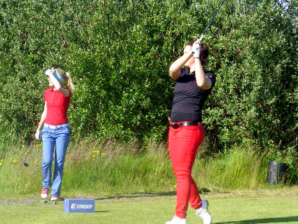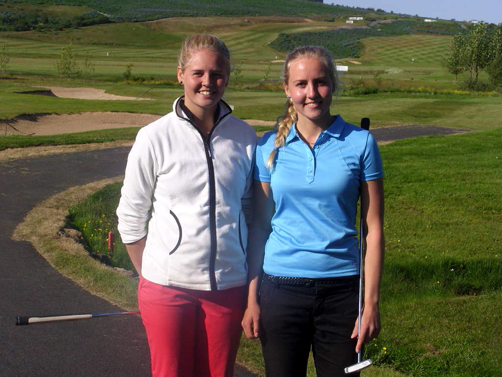 - Anna Sólveig Snorradóttir, GK (t.h.) vann klúbbfélaga sinn Jódísi Bóasdóttur í gær í 3. umferð. Mynd: Golf 1