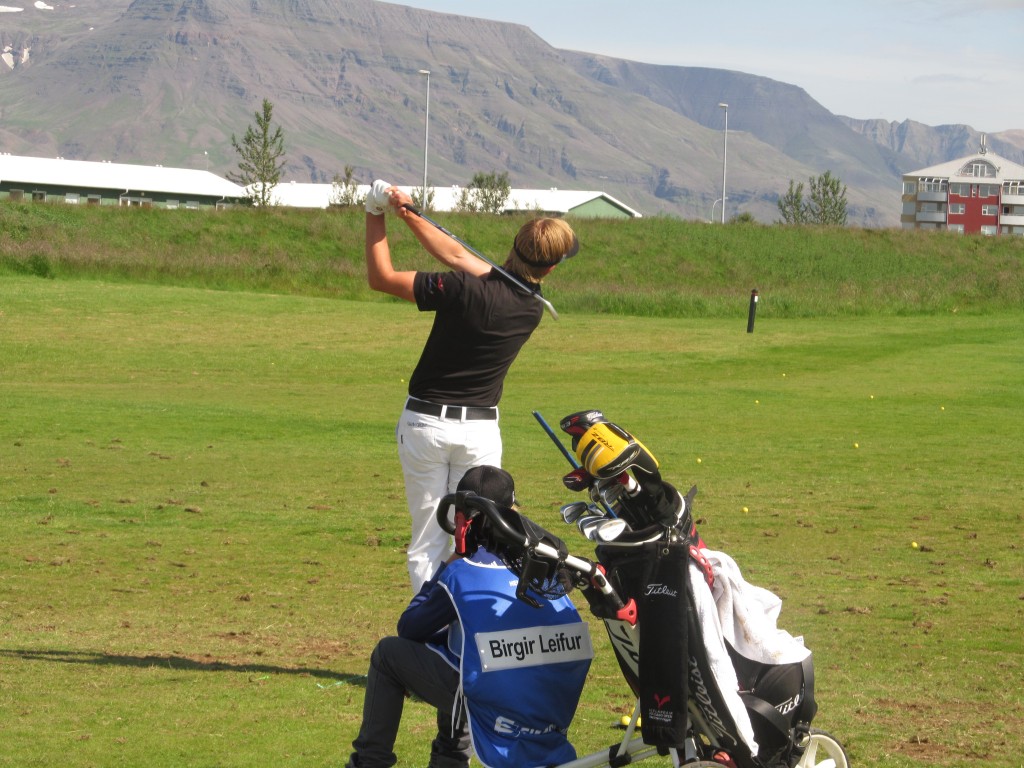 Það er fjölmargar leiðir til að fylgjast með lokadeginum því bein útsending hefst á RUV frá kl. 13:30, þeir sem eru með snjallsíma geta hlustað á hljóðrás útsendingarinnar með því að slá inn slóðina hér test.cache.is/golf. Skor keppenda er svo uppfærð beint inn á golf.is, http://www.golf.is/pages/