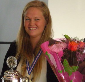 Signý þegar hún tók við stigameistaratitlinum 2011 í höfuðstöðvum Arion banka. Mynd: Golf 1