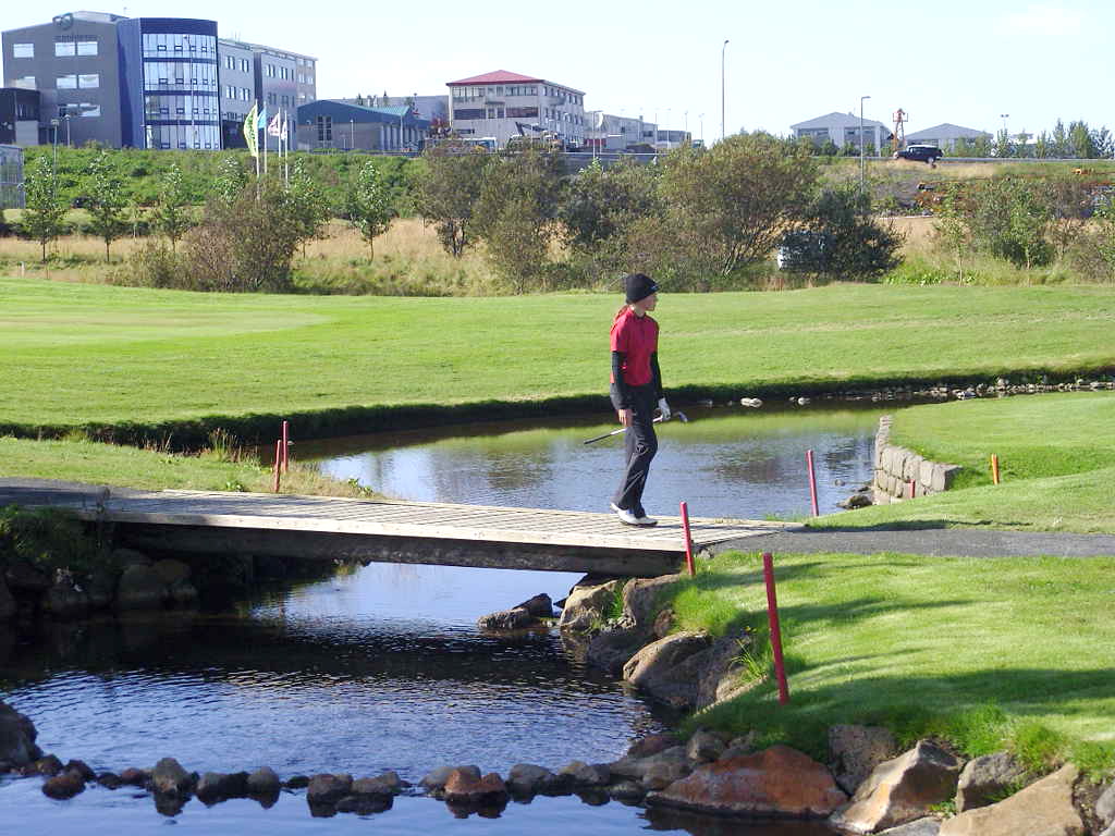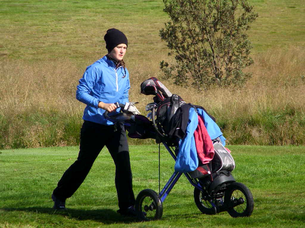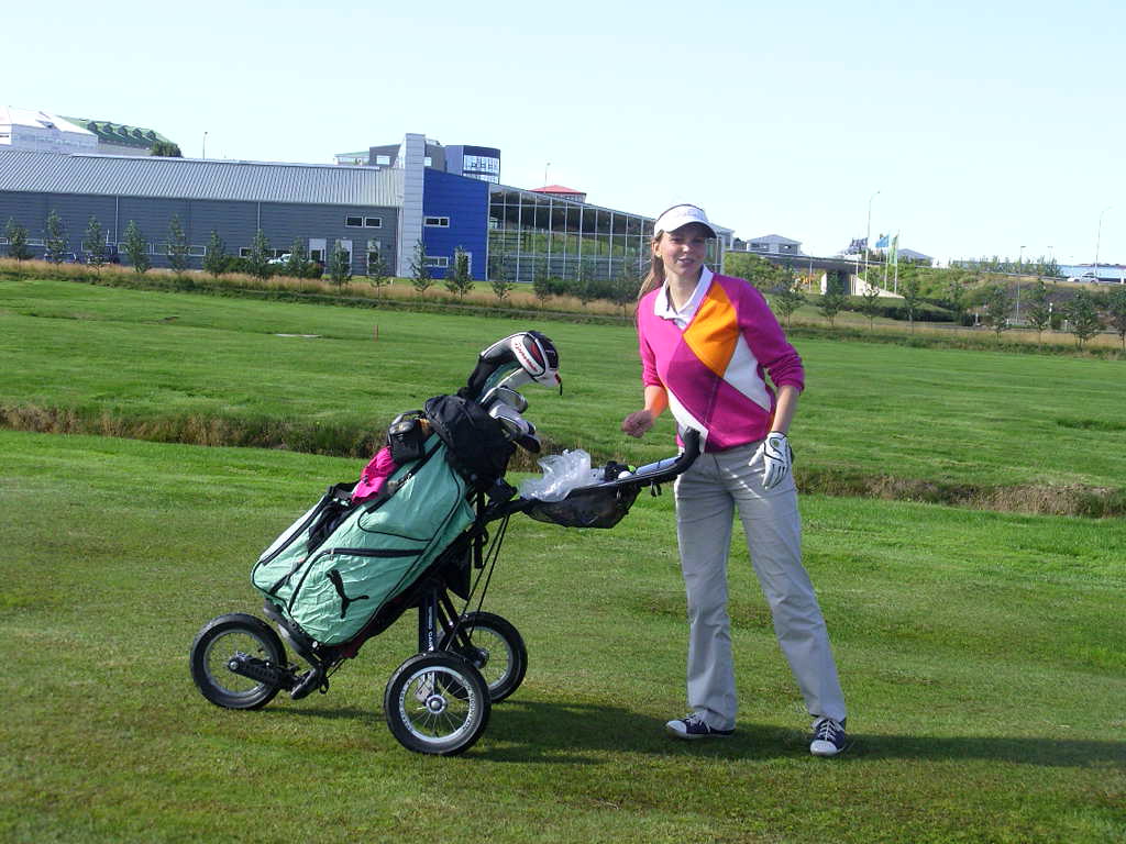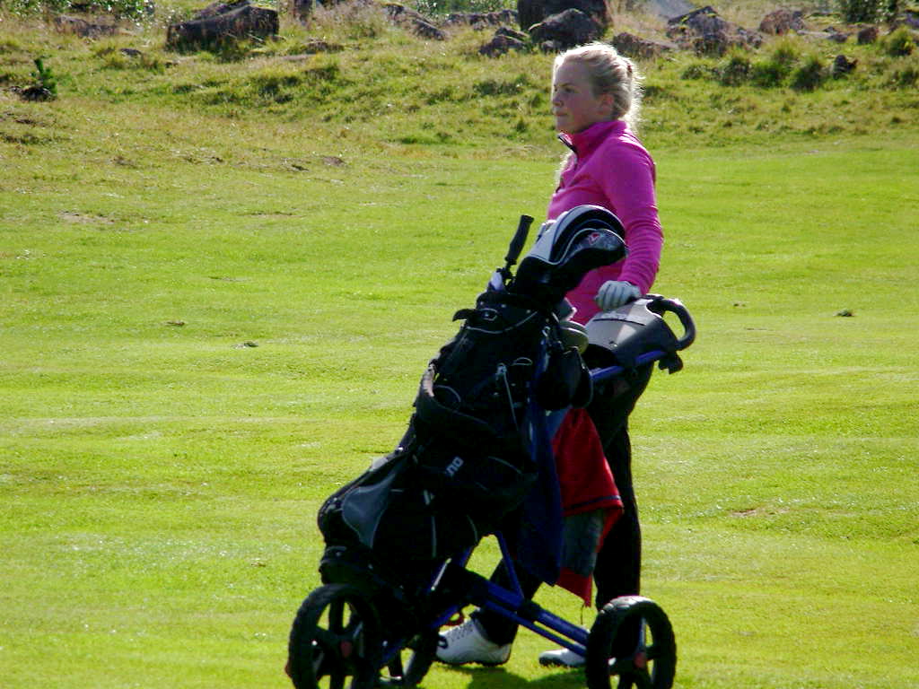 - Ragnhildur Kristinsdóttir, GR, gengur yfir á 15. flöt í Grafarholtinu. Hún varð í 2. sæti aðeins 14 ára á síðasta móti Eimskipsmótaraðarinnar 2012, Síma mótinu. Glæsilegt!!! Mynd: Golf 1