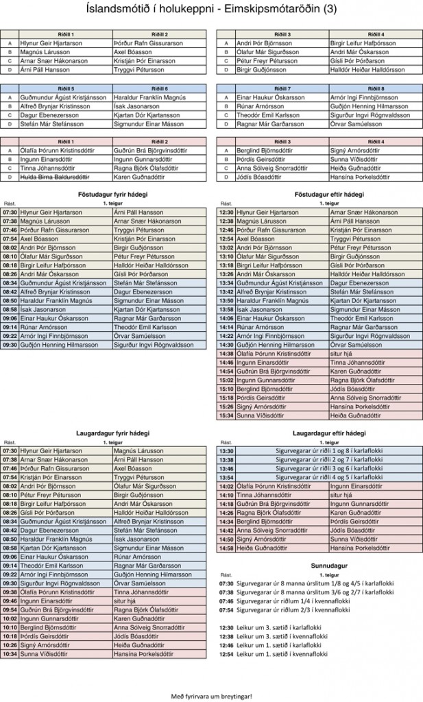 Hér eru rástímar á Íslandsmótinu í holukeppni: