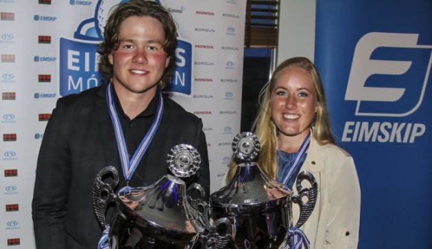 Vikar Jónasson úr GK og Berglind Björnsdóttir úr GR stóðu uppi sem stigameistarar á Eimskipsmótaröðinni 2016-2017. Þetta er í fyrsta sinn sem þau standa uppi sem stigameistara á mótaröð þeirra bestu.
