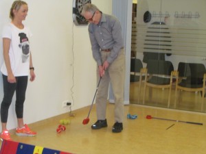 Hjón mættu í fyrsta SNAG tímann 6. febrúar 2014. Hér ásamt Katrínu SNAG-leiðbeinanda. Mynd: Golf 1