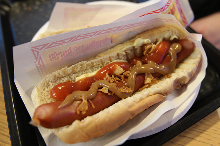 The Icelanders favorite snack is the American hot dog which we´ve turned into our own and call „Ein með öllu” (lit. One with all).  This is a wiener on a bun with 5 ingreedients (that is if it´s supposed to be a „one with all”): Ketchup, Mustard, fried onions, raw onions and remoulade (a mayo type condiment).  This is the taste of freedom the US and in fact Allies brought with them in 1944 for us Icelanders …. and we love.