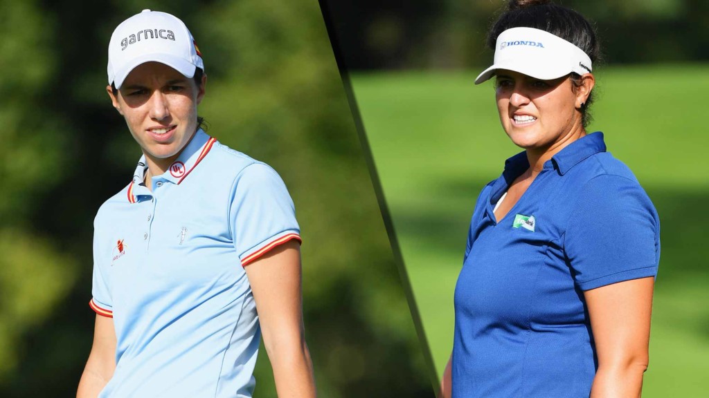 Það eru Solheim Cup kylfingurinn Carlota Ciganda og Maria Torres frá Puerto Rico, sem deila forystunni eftir 1. dag á 5. og síðasta risamóti ársins 2018 í kvenngolfinu, Evian Championship.