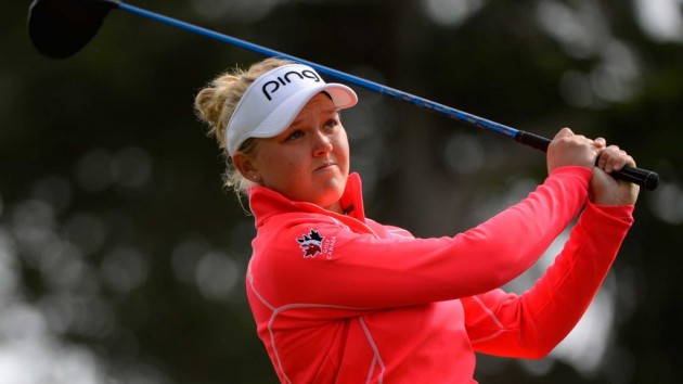Í hálfleik er það kanadíski kylfingurinn Brooke Henderson, sem leiðir, en hún er búin að spila á samtals 14 undir pari (64 64).