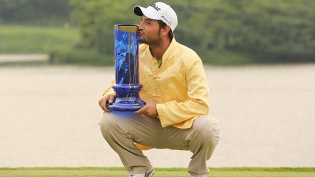 Alexander Levy eftir sigurinn á Volvo China Open í apríl 2014