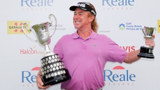 Það var heimamaðurinn Miguel Ángel Jiménez, sem stóð uppi sem sigurvegari á Opna spænska, sem fram fór á PGA Catalunya, í Girona á Spáni