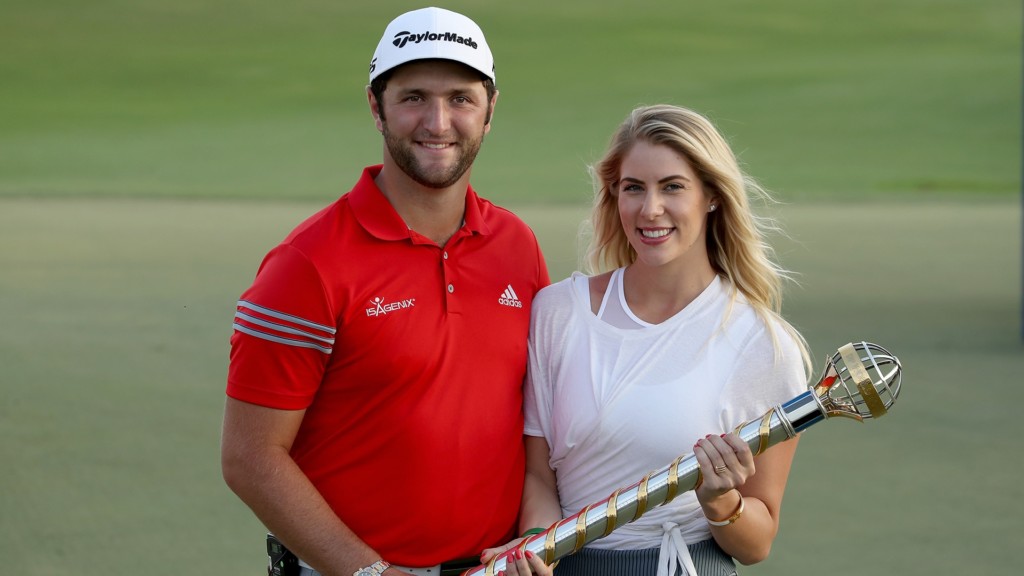 Það var spænski kylfingurinn Jon Rahm, sem stóð uppi sem sigurvegari á DP World Tour Championship, lokamóti Evróputúrsins.