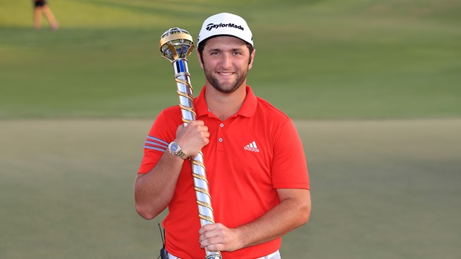 Það var spænski kylfingurinn Jon Rahm, sem stóð uppi sem sigurvegari á DP World Championship, sem að venju fór fram í Dubaí.